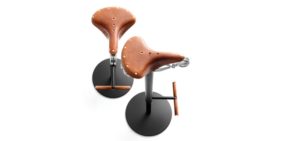 e assento em couro prespontado e centro em lona. Ele remete