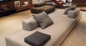 Com estrutura em poliuretano em densidades diferentes, PVC e tecidos especialmente desenvolvidos para área externa, resistentes a chuva e sol por muito mais tempo que outros materiais tradicionais e ainda oferece opcionalmente capas protetoras que podem ser acomodadas dentro de seus corpos confome as fotos em detalhes.